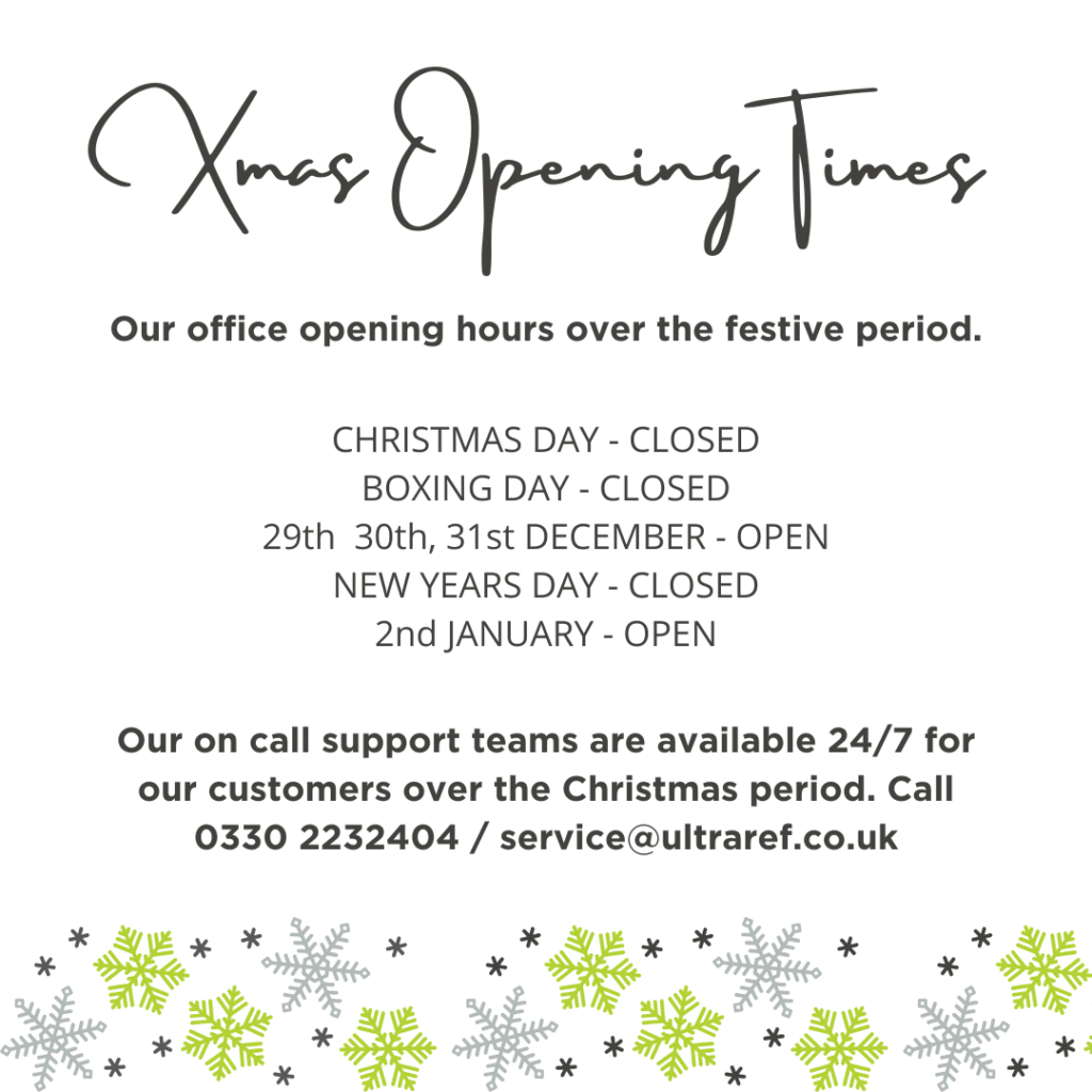 Ultra Refrigeration will keep you supported through the festive period. Here are our holiday hours so you know when to reach us. Normal working hours/on call leading up to Christmas, apart from the below: Christmas Eve – Open 9am to 5.30pm. Answerphone only from 5.30pm until Saturday 27th December at 9am, when the ‘out of […]